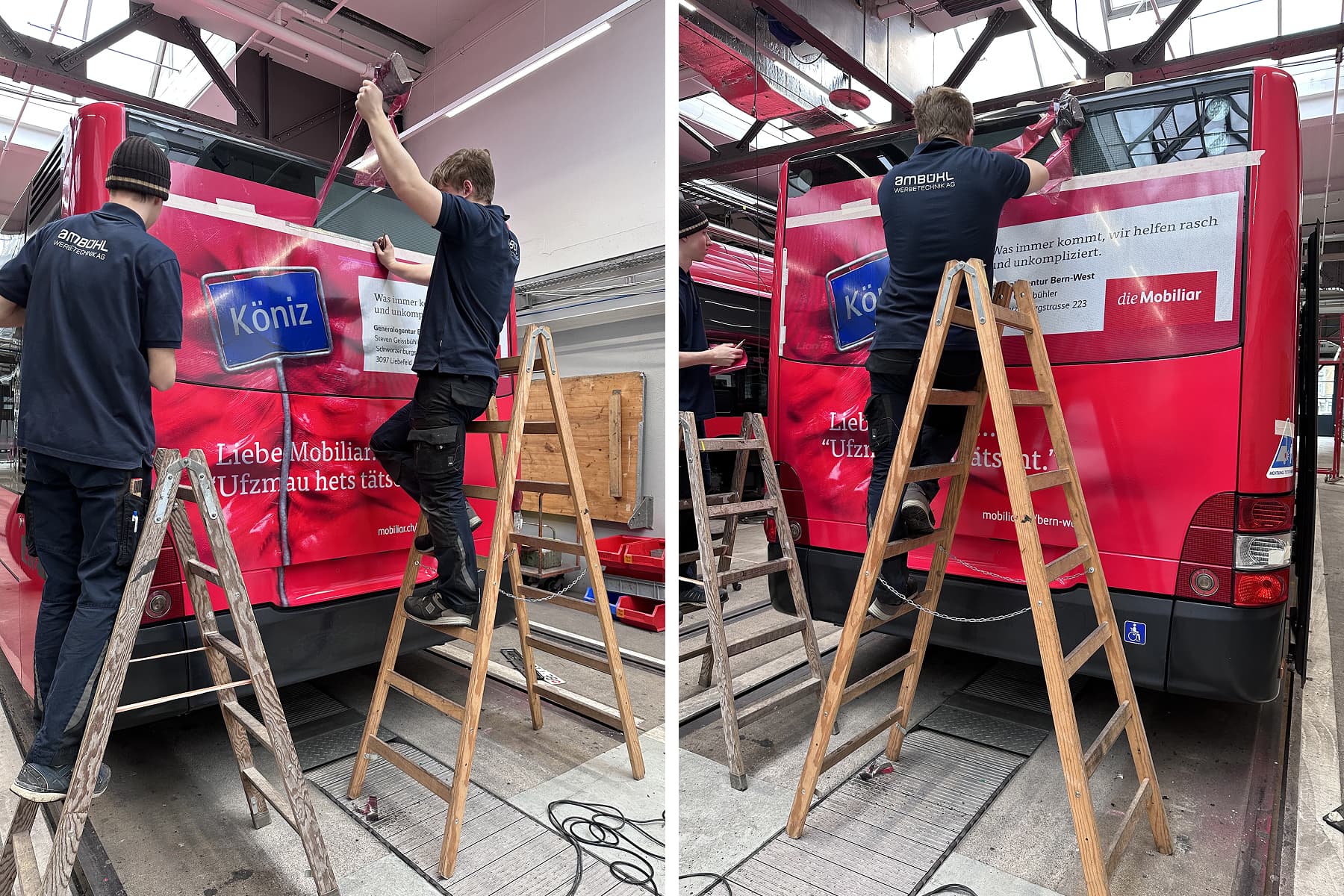 Das Ergebnis: Eine prägnante Buskampagne, die auffällt, schmunzeln lässt und gleichzeitig die Markenbotschaft klar transportiert – die Mobiliar ist da, wenn’s kracht.