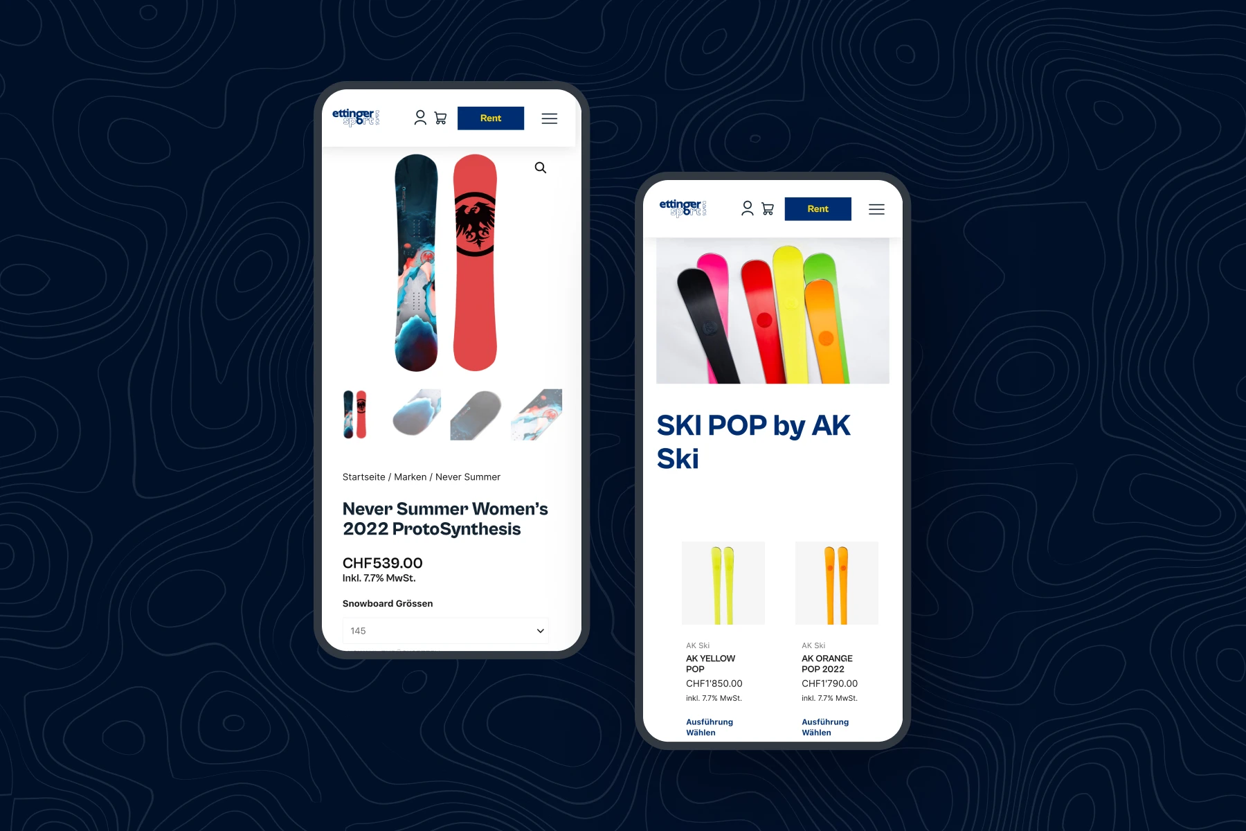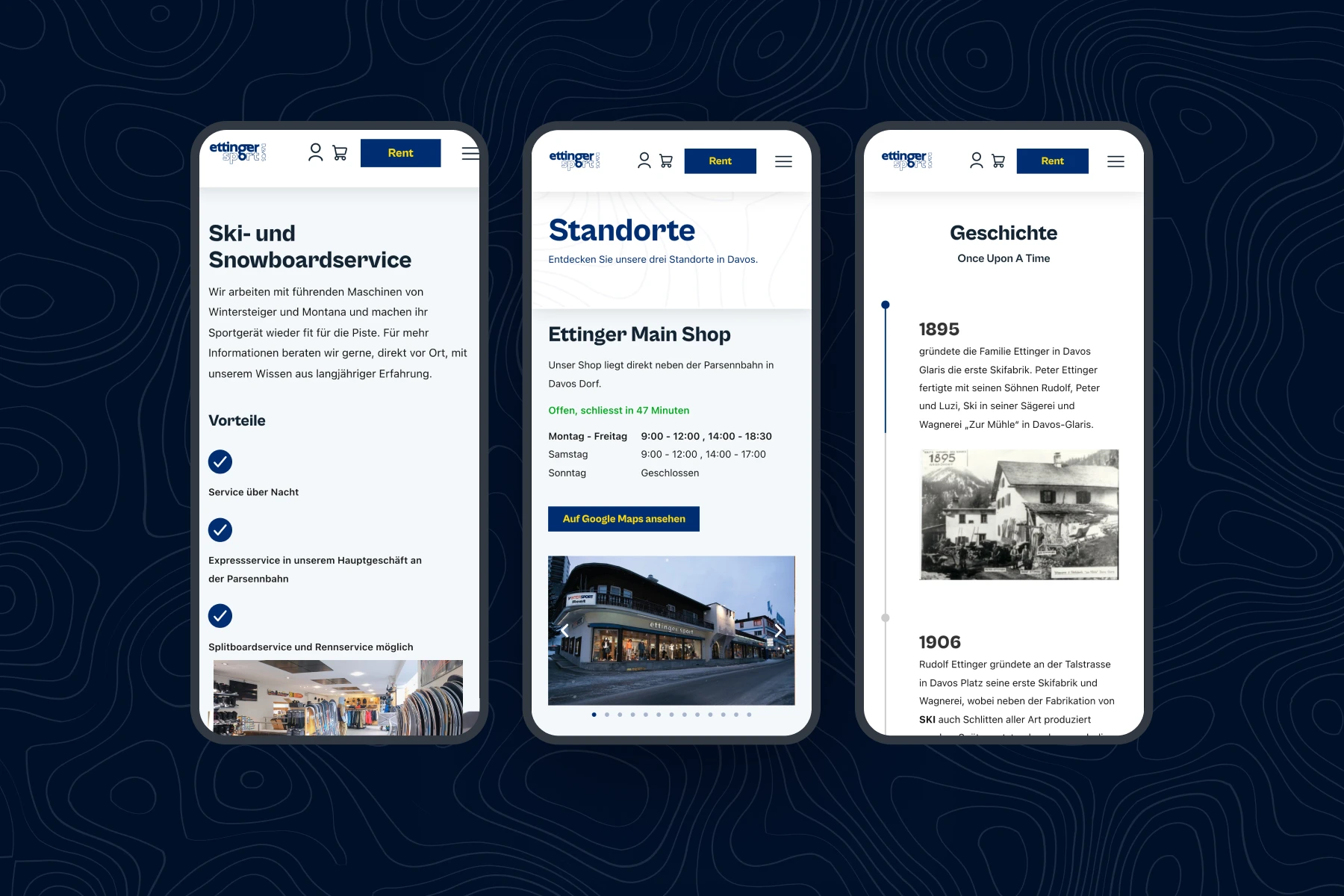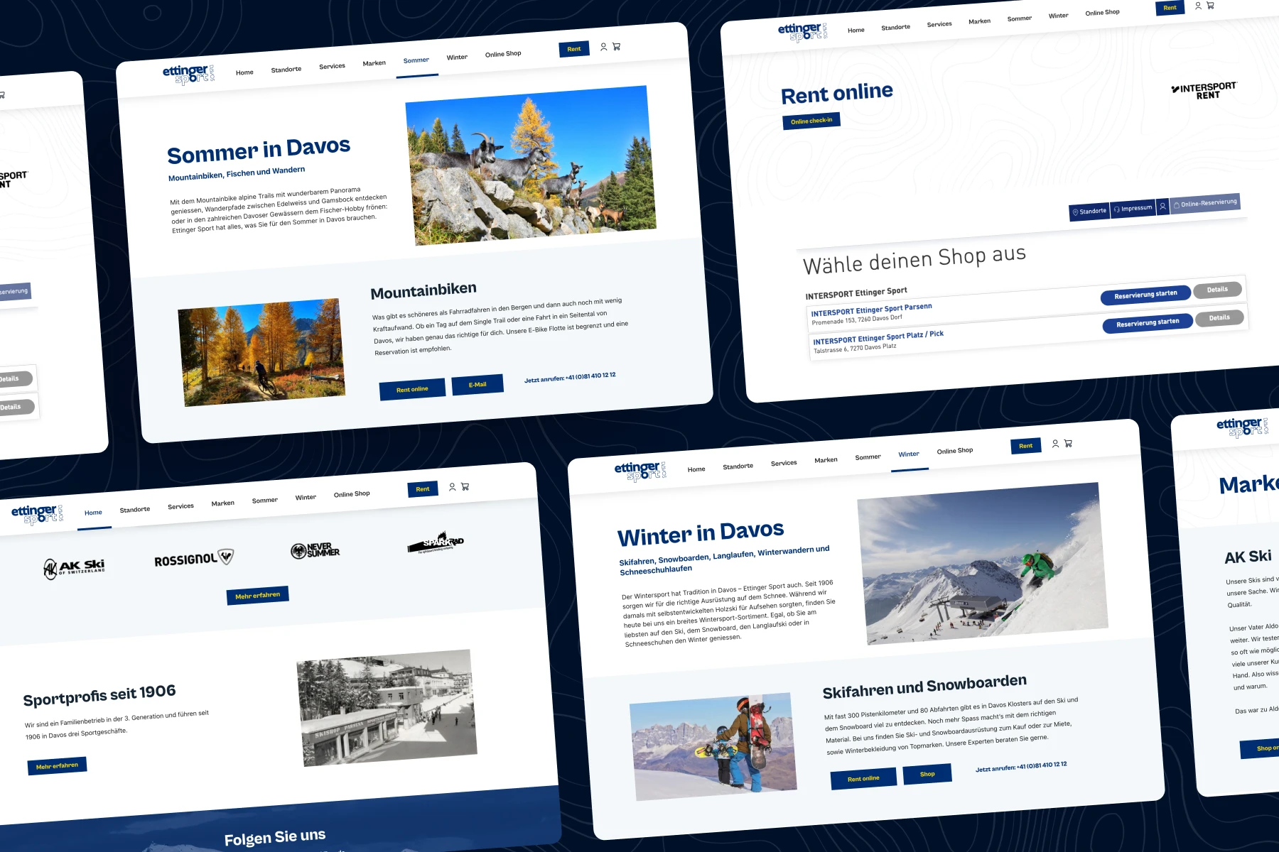 Ettinger Sport schilderten uns Ihre Needs und wir lernten das Unternehmen und ihre Philosophie besser kennen. Unsere Challenge: Der Webauftritt soll sportlich und intuitiv sein und Lust auf Bergsport machen. Wir legten die Seitenstruktur fest und starteten mit Designentwürfen. Pünktlich zu Saisonbeginn lancierten wir die neue Website mit Shop, Integration der Rent-Platform und Inhalten zu Services, Standorte und Brands. Besucher:innen finden neu auch Inpiration zum Sommer und Winter in Davos und erfahren mehr über die Firmengeschichte.Webseite besuchen: Ettinger Sport