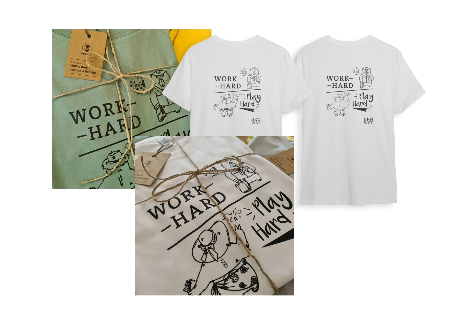 Die Illustrationen wurden anschliessend mit Adobe Illustrator vektorisiert und auf nachhaltige Bio-Baumwolle T-Shirts in verschiedenen Farben von beestie.ch gedruckt.