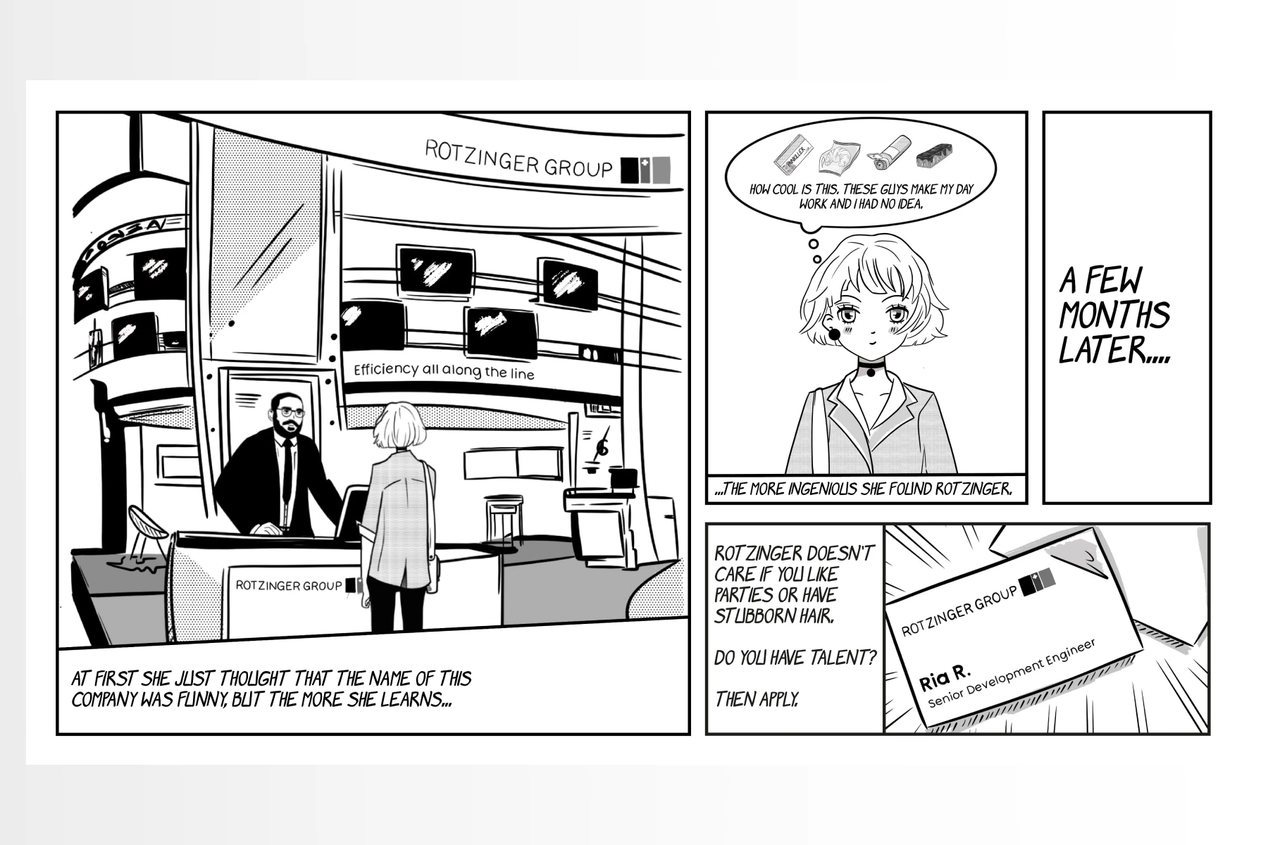 Für die Rotzinger Group durften wir eine aussergewöhnliche Recruiting-Kampagne entwickeln: Ein eigens illustrierter Manga-Comic, der gezielt junge Menschen anspricht und sie für eine Ausbildung bei Rotzinger begeistert.