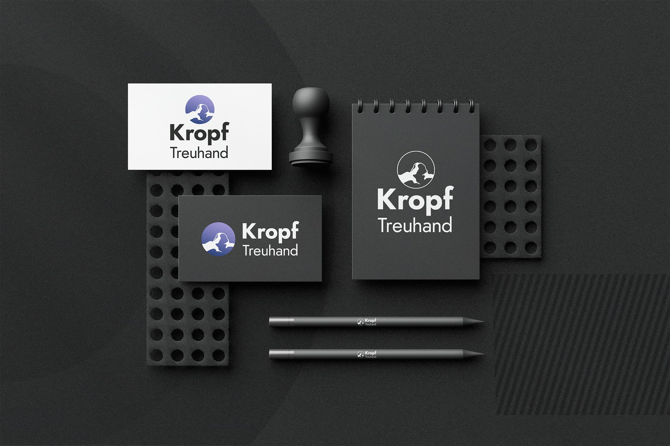 Das neue Logo stärkt den Markenauftritt von Kropf Treuhand und lässt sich flexibel in allen Anwendungen einsetzen: von Visitenkarten über Geschäftsdrucksachen bis hin zu digitalen Kanälen. Es repräsentiert die Firma als kompetenten, regional verankerten Partner für Treuhand-Dienstleistungen.