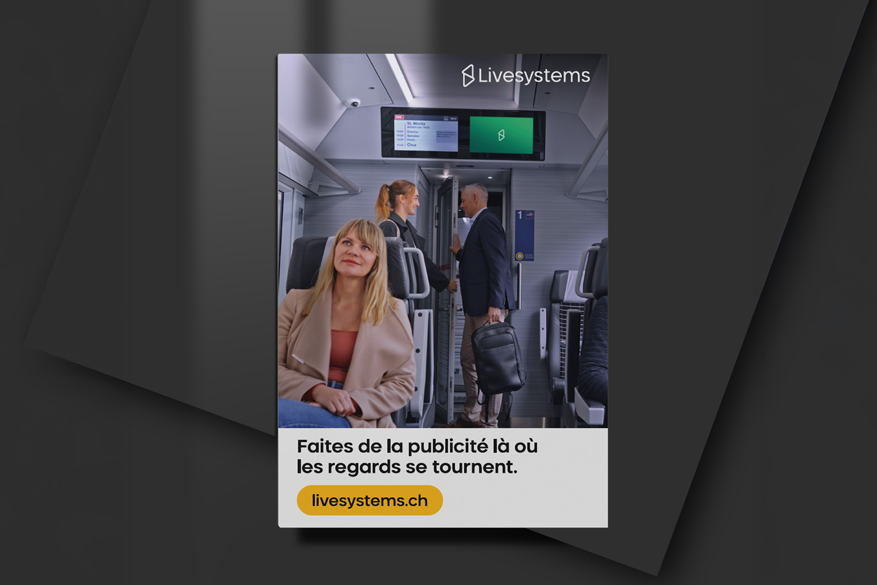 Für die Livesystems AG, einen der führenden Anbieter im Bereich digitale Aussenwerbung in der Schweiz, durften wir eine umfassende Eigenwerbungskampagne entwickeln und umsetzen. Ziel war es, das Unternehmen sowohl im Bewegtbildbereich als auch mit klassischen Werbemitteln wirkungsvoll in Szene zu setzen.