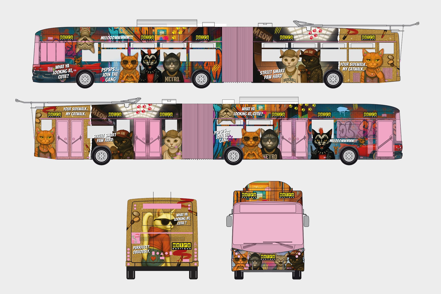 Gestaltung und Layout des Katzen Bus für Metro in Illustrator
