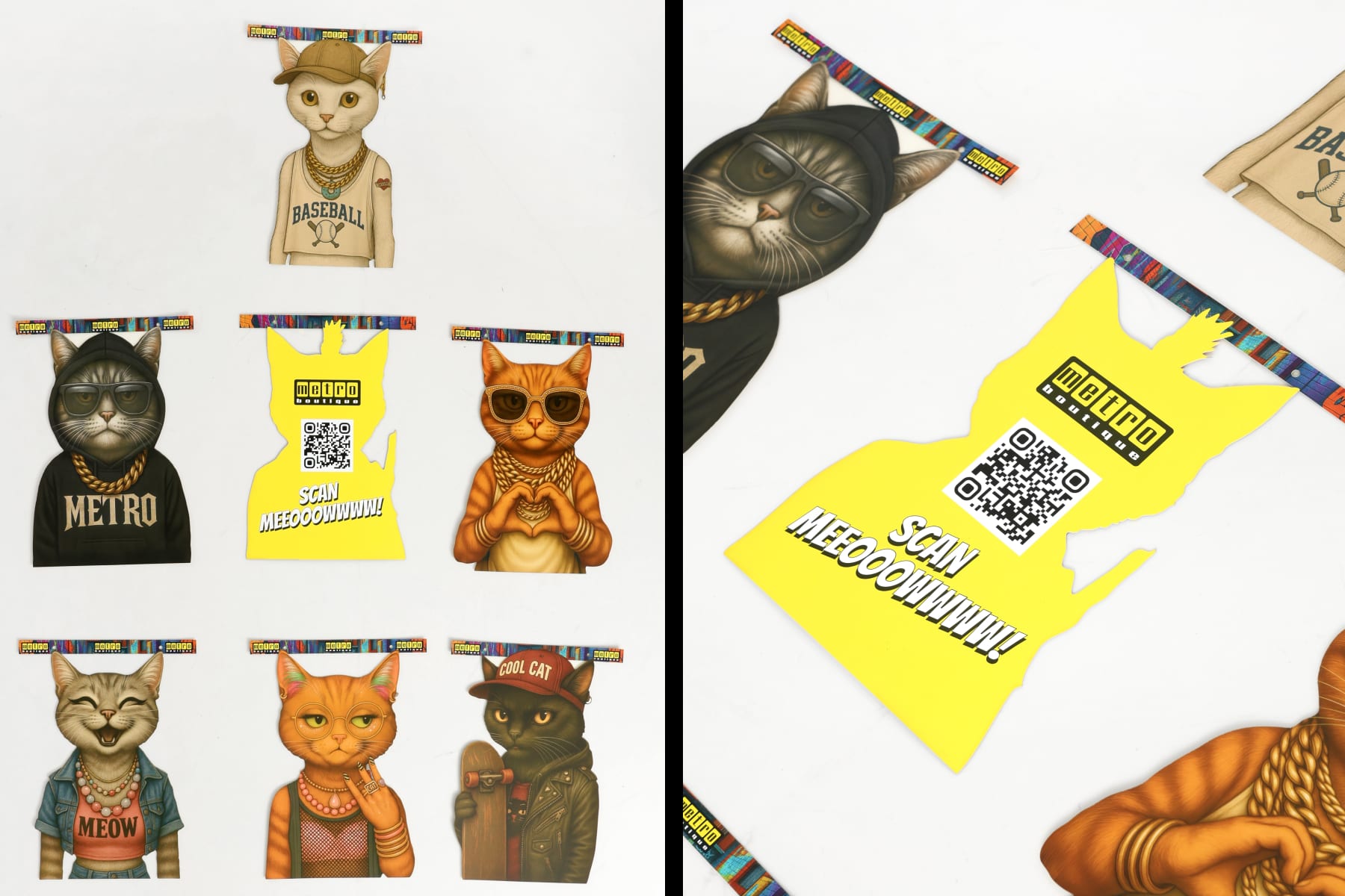 Hängekarton für Metro Boutique Kampagne Katzen freie Form ausgestanzt