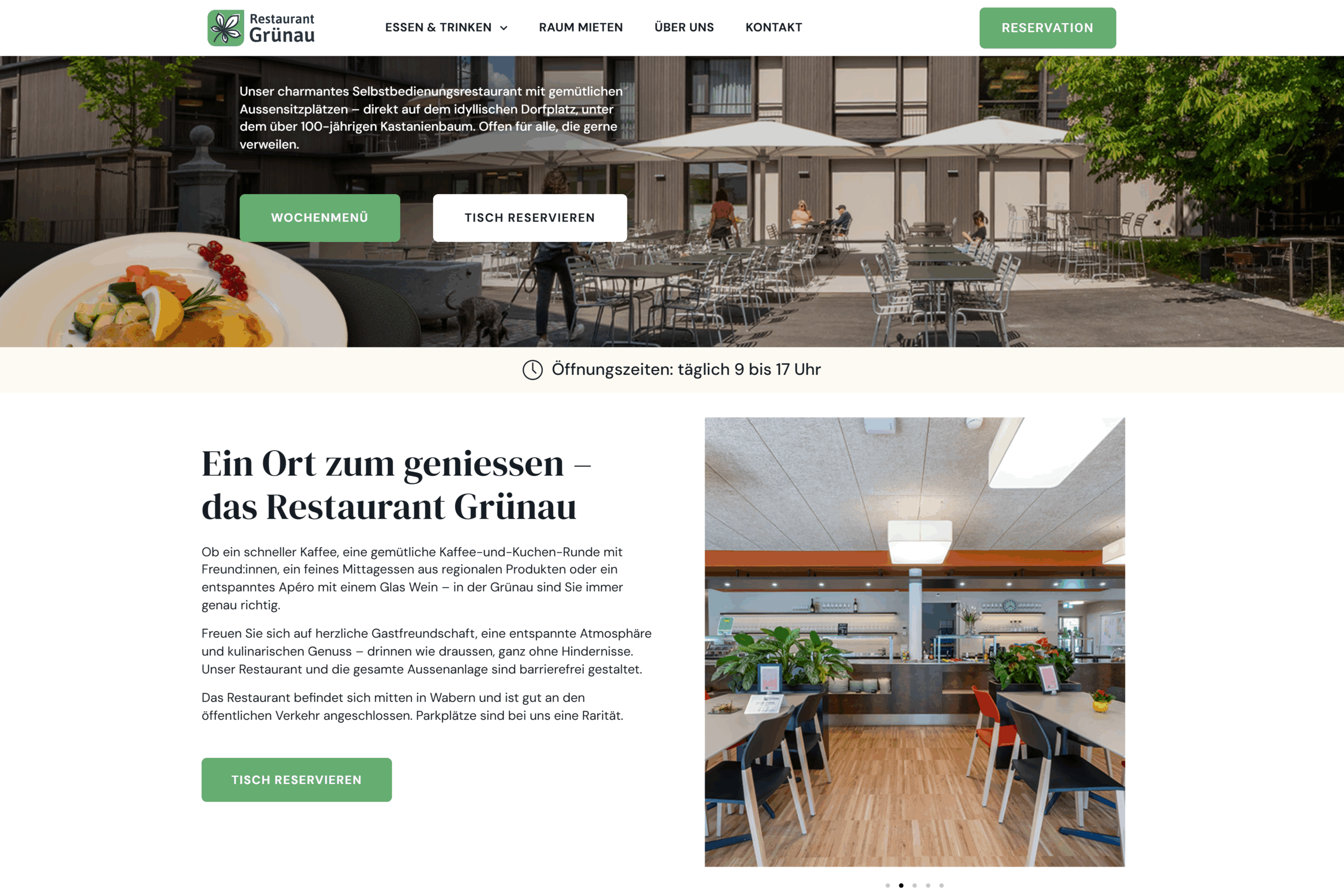 Das Restaurant Grünau verfügt heute über eine moderne, stimmige und suchmaschinenoptimierte Online-Präsenz, die durch professionelle Fotos, ein klares visuelles Konzept und eine benutzerfreundliche Website überzeugt.